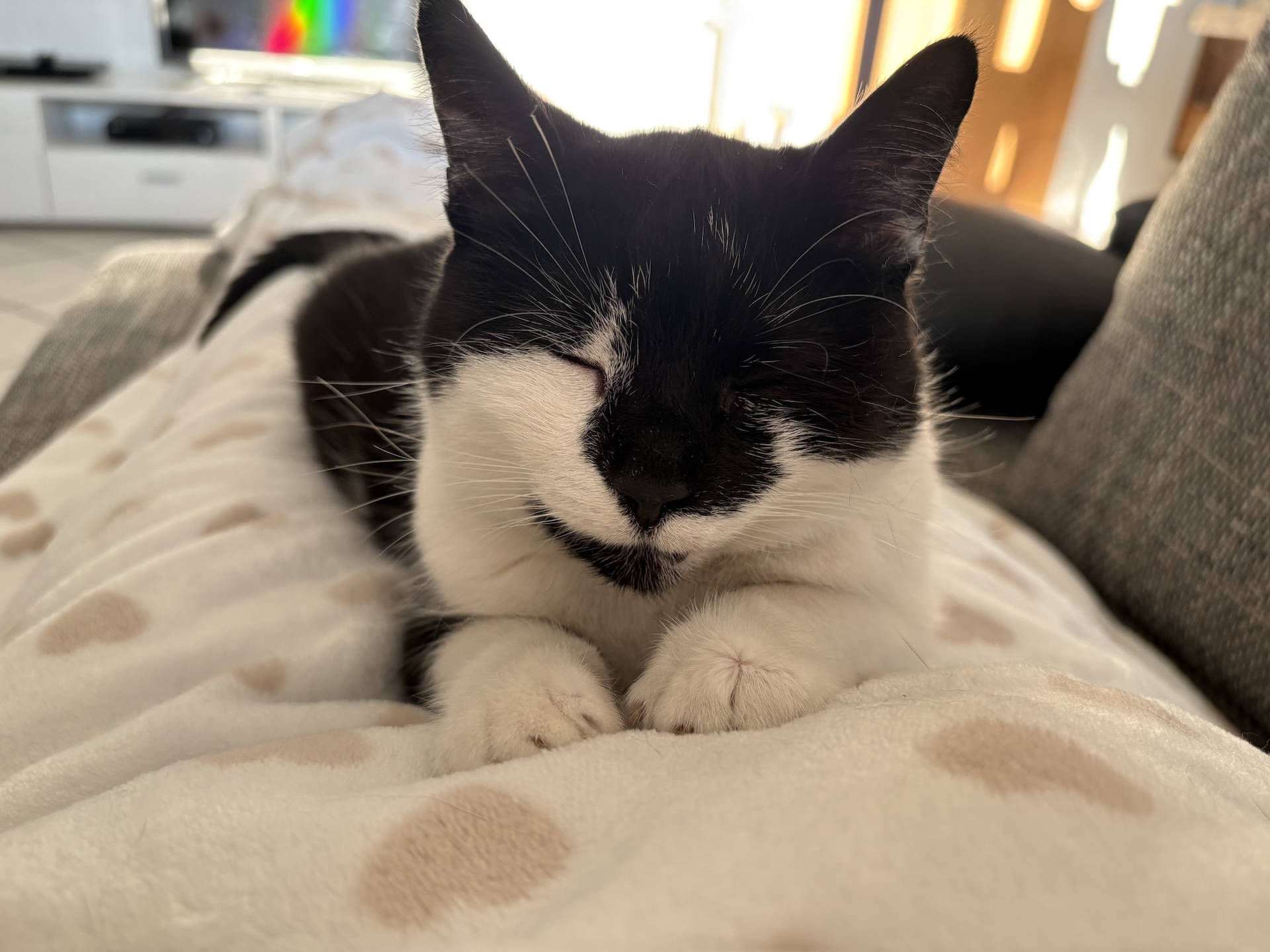 Nach ca. einem halben Jahr zog dann noch eine kleine vierbeinige Samtpfote namens Smilla bei uns ein. Aber es dauerte nicht lange: Schon nach kurzer Zeit hatte ich sie total ins Herz geschlossen – sie gefiel mir, wie sagt man heute: MEGA. So eine Schwester zum Spielen und Toben ist das Beste, was mir passieren konnte.